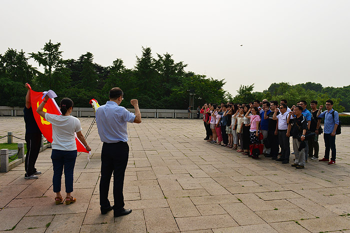 ????????第一項(xiàng)活動(dòng)是全體黨員來到雨花臺(tái)革命烈士紀(jì)念碑,為先烈敬獻(xiàn)花圈,并在黨旗的見證下,莊嚴(yán)宣誓黨的誓詞。重溫黨的誓詞,讓在場(chǎng)的每一位黨員在內(nèi)心深處又多了一份對(duì)自己的洗禮和自省。