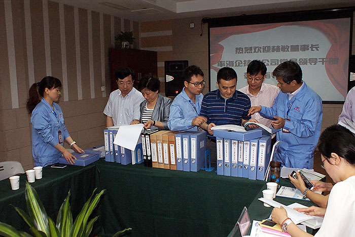 ?????????領(lǐng)導(dǎo)翻閱泰州倉儲(chǔ)的規(guī)章制度,和泰州海企技術(shù)領(lǐng)導(dǎo)交流發(fā)展規(guī)范心得。