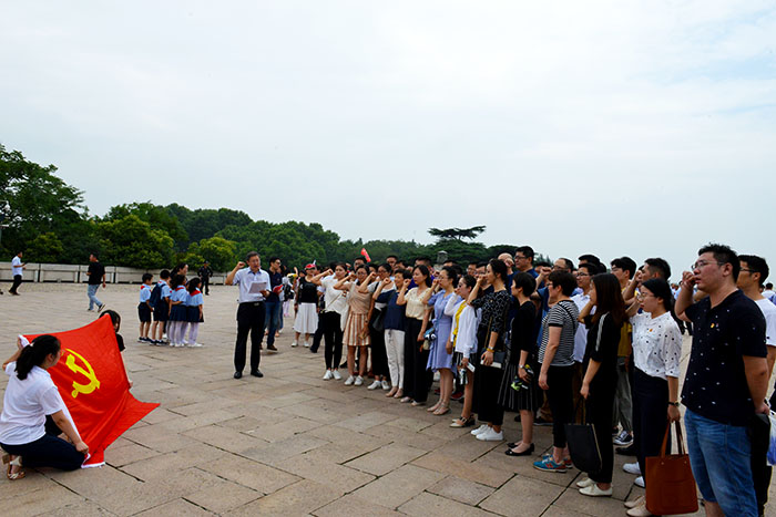 ????????站在革命先烈浴血奮斗的地方,技術(shù)公司黨支部專職副書記龔堅同志帶領(lǐng)公司全體黨員舉起右拳,面對中國共產(chǎn)黨人初心之地,面對著鮮艷的黨旗,齊聲重溫入黨誓詞,鏗鏘豪邁的聲音在耳邊久久回蕩,讓每一位黨員的心靈再次受到震撼和洗禮。
