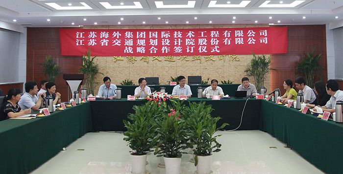 ??????? 9月2日下午,江蘇海外集團(tuán)國(guó)際技術(shù)工程有限公司與江蘇省交通規(guī)劃設(shè)計(jì)院股份有限公司舉行戰(zhàn)略合作簽訂儀式,海企技術(shù)公司林敏總經(jīng)理和省交通規(guī)劃設(shè)計(jì)院楊衛(wèi)東院長(zhǎng)分別代表合作雙方在協(xié)議上簽字。江蘇省交通廳梅正榮副廳長(zhǎng)、江蘇省地方海事局方建華局長(zhǎng)、海企集團(tuán)楊大偉董事長(zhǎng)、黃宏亮總裁、朱大榮副書記等領(lǐng)導(dǎo)出席了雙方的簽訂儀式。