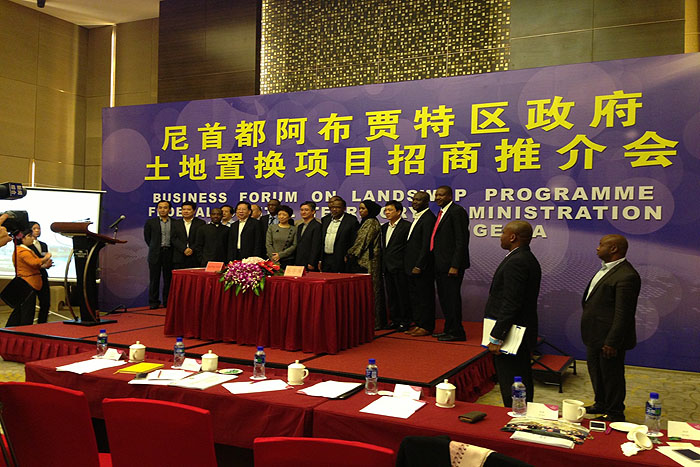 ????????2013年10月19日,尼日利亞首都阿布賈特區(qū)政府代表團(tuán)在特區(qū)部長(zhǎng)——巴拉?穆哈默德先生帶領(lǐng)下,在南京舉行了土地置換項(xiàng)目招商推介會(huì),目的是利用各種優(yōu)惠手段,吸引中國(guó)企業(yè)去尼日尼亞首都阿布賈去投資。我司應(yīng)邀參加會(huì)議。