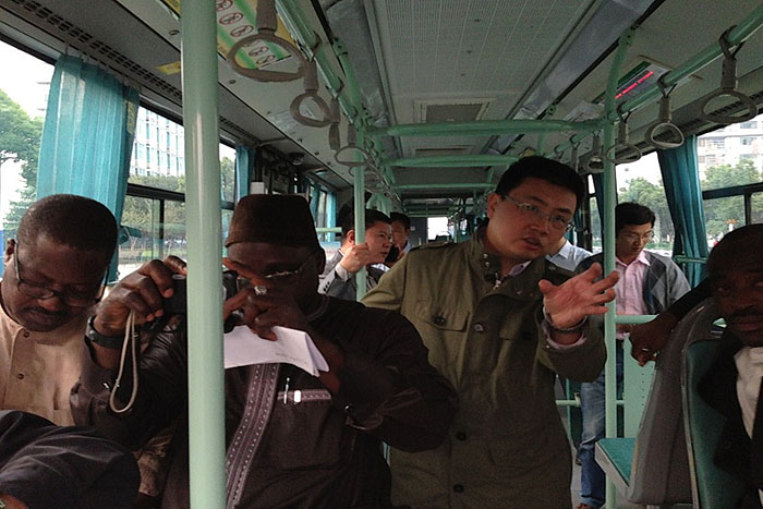 ????????應(yīng)我司的邀請(qǐng),10月20日下午,尼日利亞首都阿布賈市特區(qū)政府一行4人,在我司副總經(jīng)理徐春江的陪同下,前往常州考察快速公交(BRT)建設(shè)。