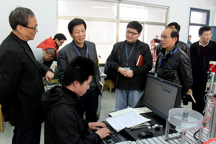 ????????劉維儉校長(zhǎng)熱情地接待來(lái)賓,介紹了校園布局、辦學(xué)規(guī)模、辦學(xué)歷史等,陪同參觀了駐校企業(yè)常州航天創(chuàng)勝數(shù)控技術(shù)有限責(zé)任公司、數(shù)控實(shí)訓(xùn)車(chē)間、機(jī)電樓創(chuàng)新工作室、機(jī)電一體化實(shí)訓(xùn)室、PLC實(shí)驗(yàn)室、PLC實(shí)訓(xùn)室、電氣安裝與維修實(shí)訓(xùn)室、自動(dòng)控制實(shí)訓(xùn)室等機(jī)電專(zhuān)業(yè)科室。在就坐會(huì)議前給予來(lái)賓更直接、更直觀的感受。
