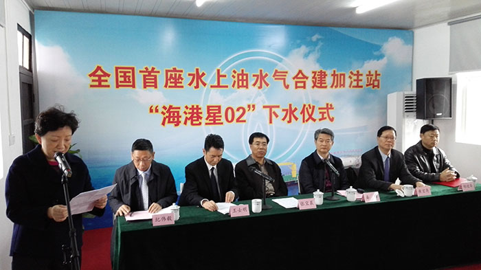 ????????2016年12月20日,由江蘇海企港華燃?xì)獍l(fā)展有限公司自行建造的全國(guó)首座水上油水氣合建加注站“海港星02”下水儀式在南京八卦洲成功舉行。江蘇海事局副局長(zhǎng)王士明、江蘇省經(jīng)濟(jì)和信息化委員會(huì)副主任秦雁、交通運(yùn)輸部水運(yùn)科學(xué)研究院學(xué)術(shù)委員會(huì)主任張寶晨、中國(guó)船級(jí)社江蘇分社副總經(jīng)理鄭迎革、南京市交通局副局長(zhǎng)吳紅兵、南京市住建委副主任劉剛、海企集團(tuán)董事長(zhǎng)黃宏亮、香港中華煤氣副總裁紀(jì)偉毅等領(lǐng)導(dǎo)以及江蘇省、南京市、棲霞區(qū)有關(guān)職能部門(mén)負(fù)責(zé)人、合作單位代表、媒體記者等70余人出席了下水儀式。