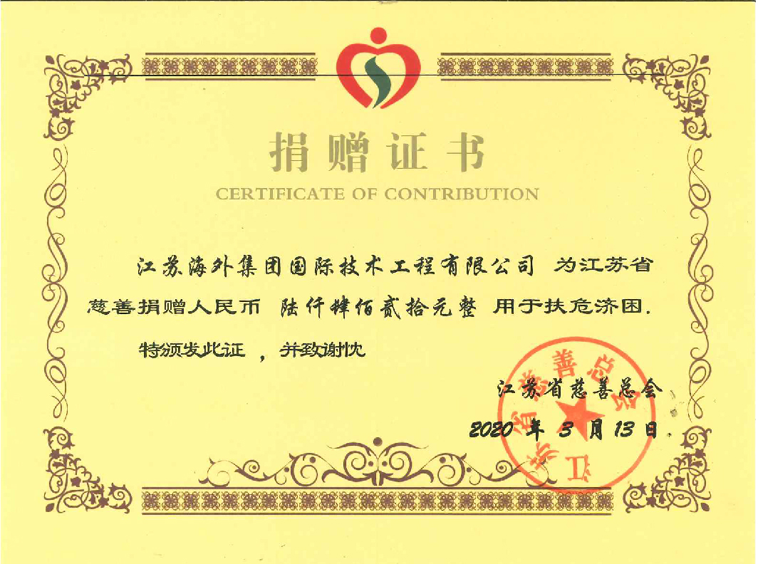 精準扶貧捐贈證書