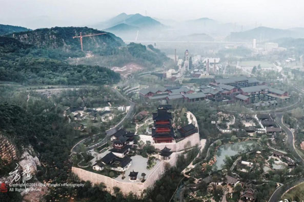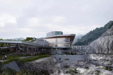 ????????位于湯山之中孔山片區(qū)的未來(lái)花園項(xiàng)目,是本次學(xué)習(xí)的主要現(xiàn)場(chǎng),原本是一座采石場(chǎng),整個(gè)項(xiàng)目傍山而建,其中的崖壁劇院,則利用了早年礦山開(kāi)鑿留下的山體切割面,形成了一個(gè)巨大的屏幕,用于作為重要演出中投影的背景幕布。