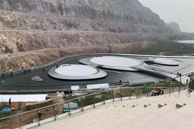 ????????作為承載綠色低碳生活方式的藝術(shù)表現(xiàn)場(chǎng)景,湯山園博園在項(xiàng)目規(guī)劃之初,就奠定了其作為南京未來(lái)新的大型生態(tài)旅游地標(biāo)的基礎(chǔ),整個(gè)園區(qū)占地3.38平方公里,其中核心園區(qū)面積2.2平方公里,整個(gè)園區(qū)是在一個(gè)廢棄的礦坑上歷時(shí)兩年建成,且因地制宜,大面積保留礦坑原本地勢(shì),形成湖泊、崖壁截面等。